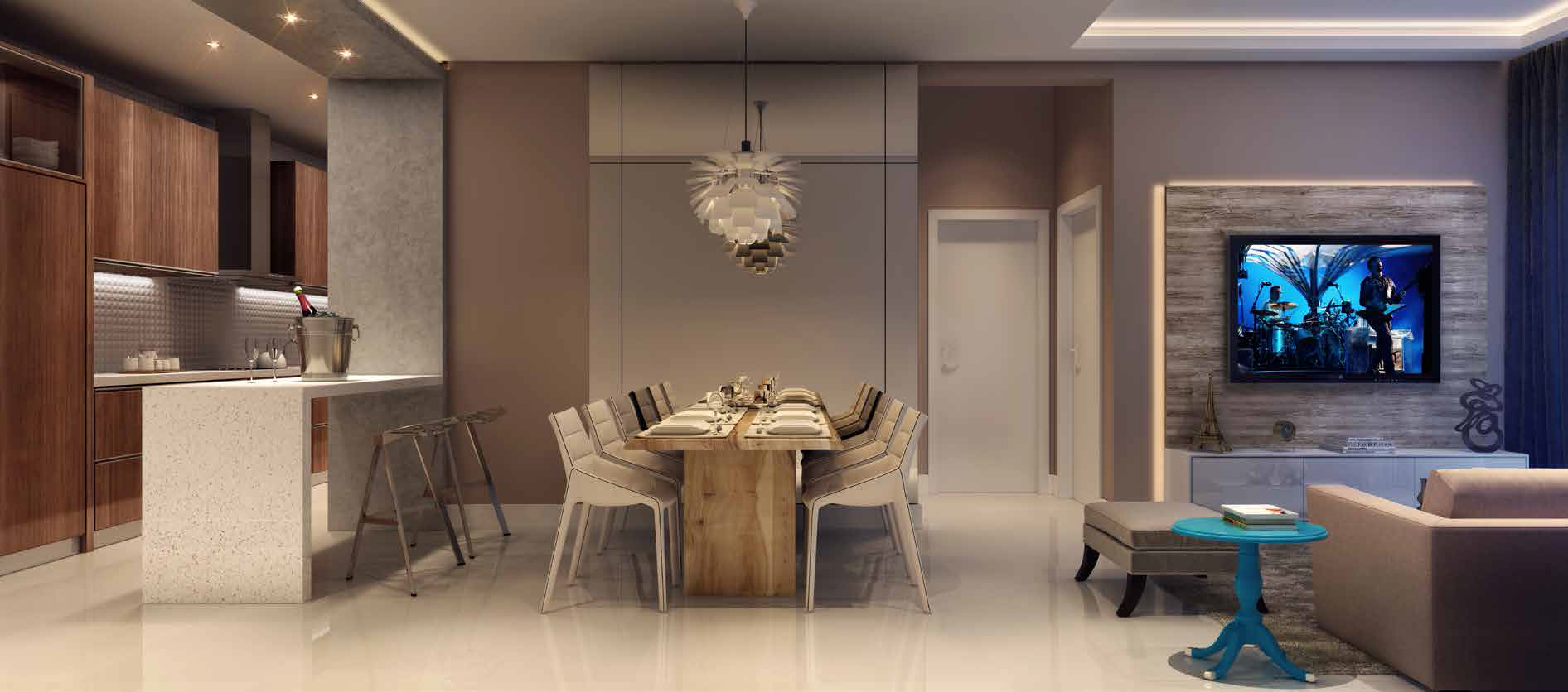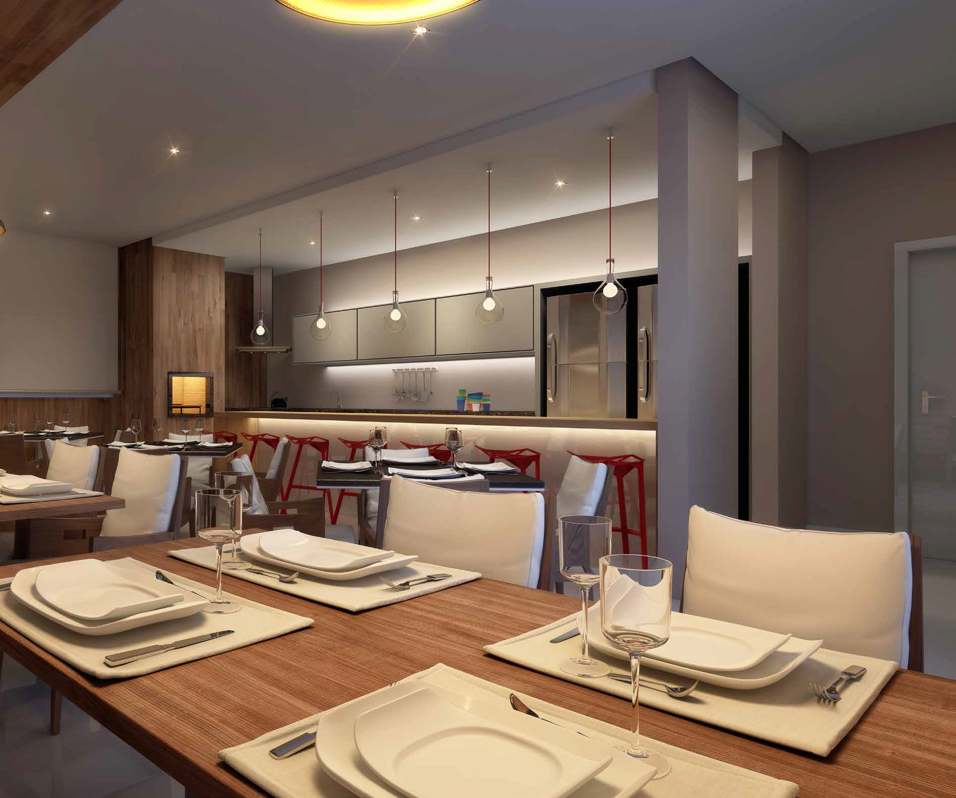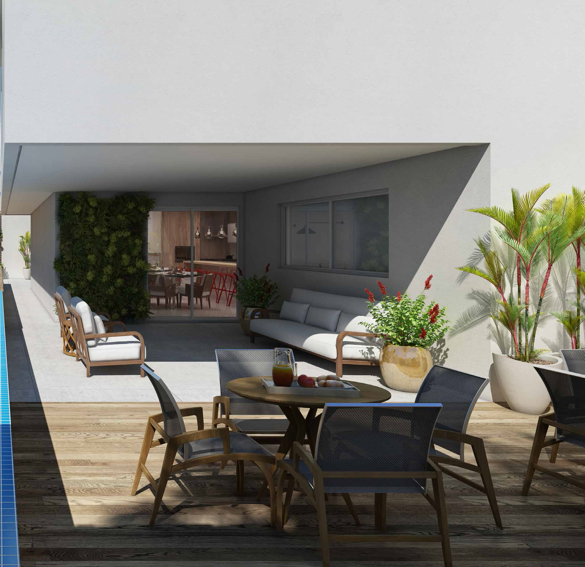 - Fachada com acabamento em pele de vidro e detalhes em pastilha